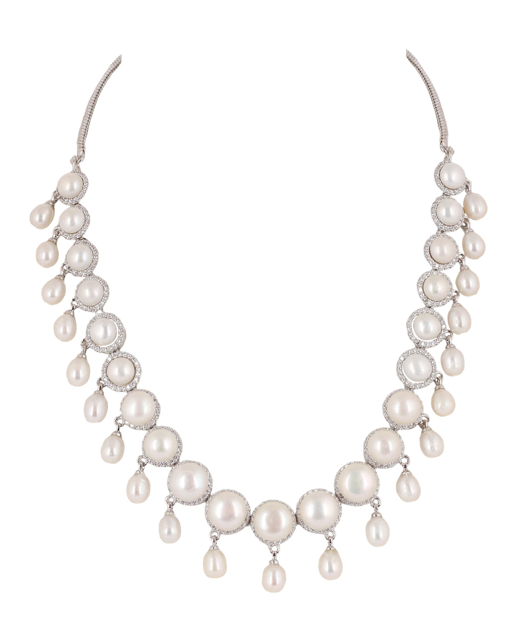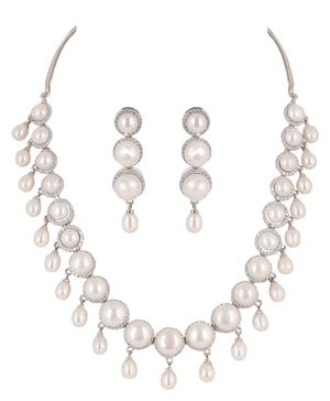 Cz Stone Studded Necklace Set With Real Button Pearls And Pearl Drops n Certificate For Pearls(D.No ADPRLS2070)