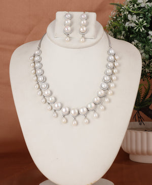 Crafted with high-quality craftsmanship, the set includes a stunning necklace, matching earrings, all designed to enhance any outfit—whether it’s for a special occasion or everyday wear. The soft, iridescent hues of the pearls range from classic whites to subtle pinks, adding a touch of warmth and refinement.