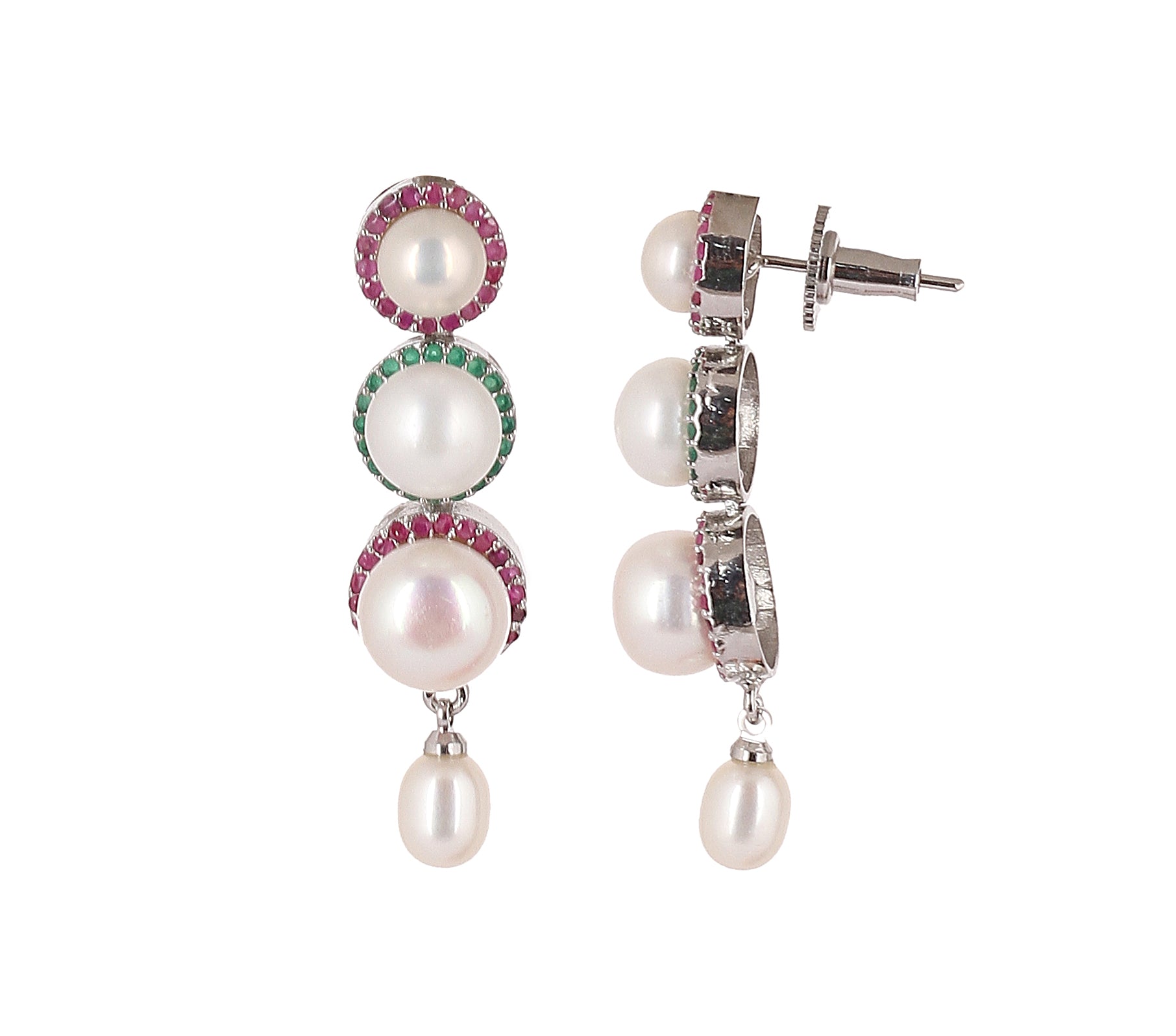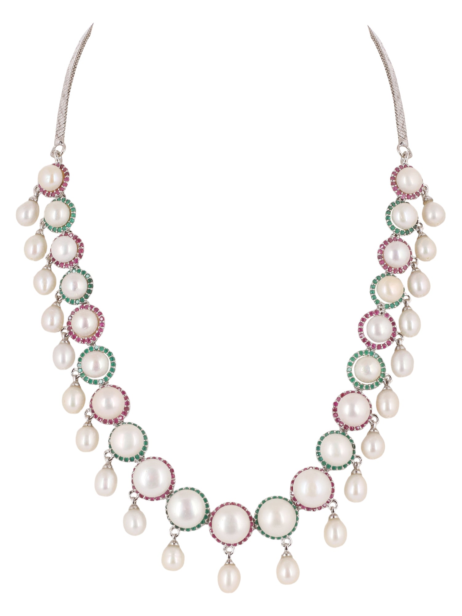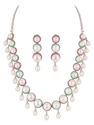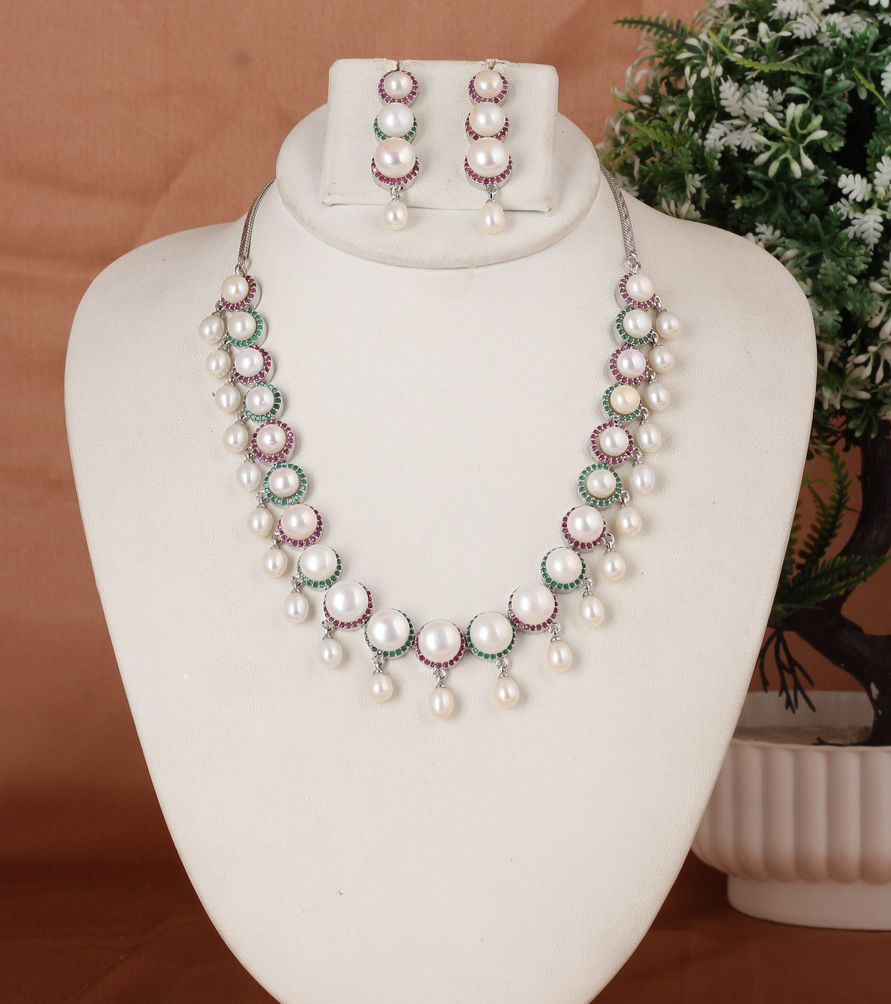 Cz Stone Studded Necklace Set With Real Button Pearls And Pearl Drops n Certificate For Pearls(D.No ADPRLS2071)