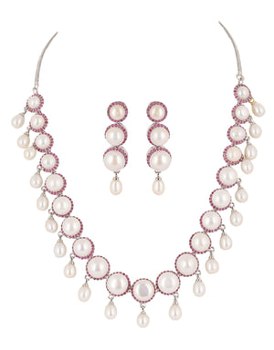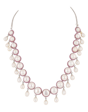 Cz Stone Studded Necklace Set With Real Button Pearls And Pearl Drops n Certificate For Pearls(D.No ADPRLS2072)