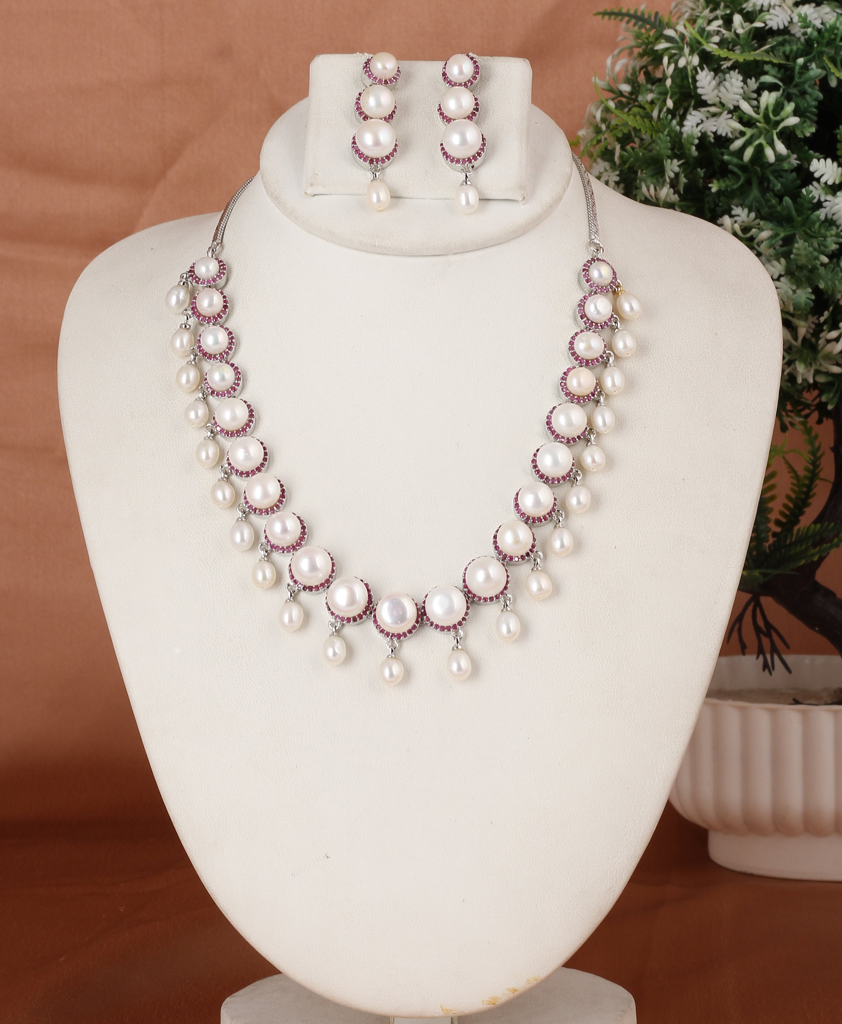 Crafted with high-quality craftsmanship, the set includes a stunning necklace, matching earrings, all designed to enhance any outfit—whether it’s for a special occasion or everyday wear. The soft, iridescent hues of the pearls range from classic whites to subtle pinks, adding a touch of warmth and refinement.