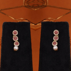 Cz Stone Studded Necklace Set With Real Button Pearls n Certificate(D.No ADPRLS2899)