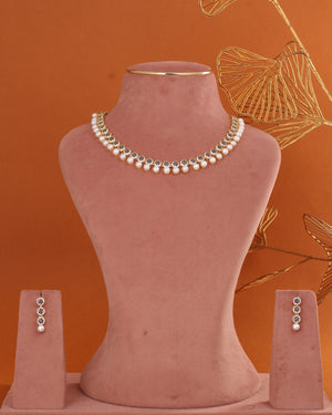 Cz Stone Studded Necklace Set With Real Button Pearls n Certificate(D.No ADPRLS2900)