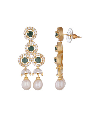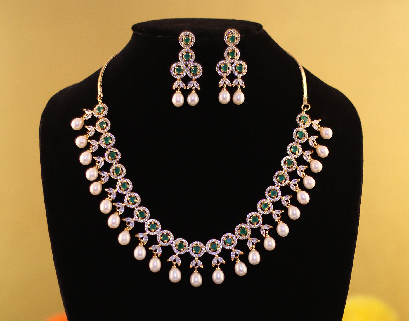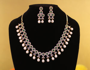 Cz Stone Studded Necklace Set With Real Pearl Drops With Certificate(D.No ADPRLS832)