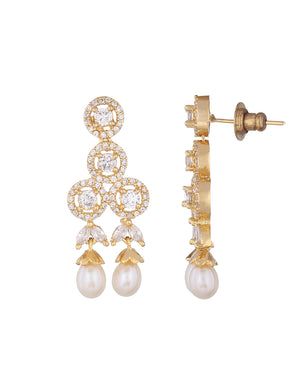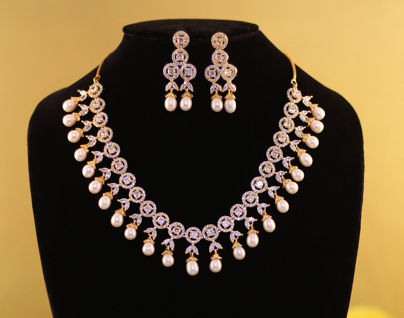 Cz Stone Studded Necklace Set With Real Pearl Drops With Certificate(D.No ADPRLS833)