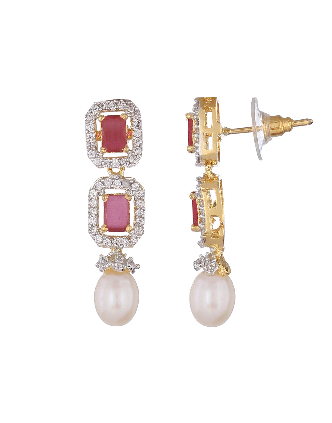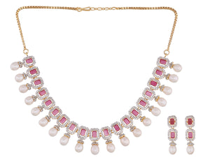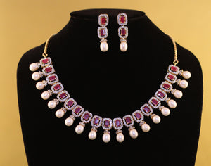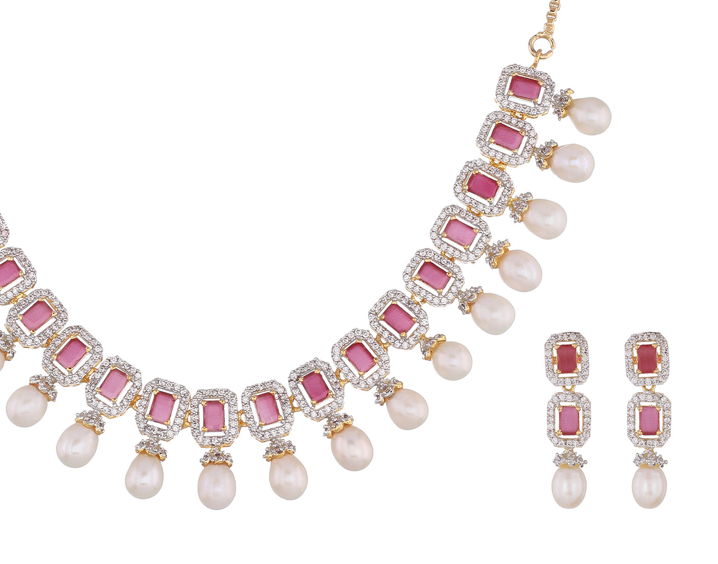 Cz Stone Studded Necklace Set With Real Pearl Drops With Certificate(D.No ADPRLS836)