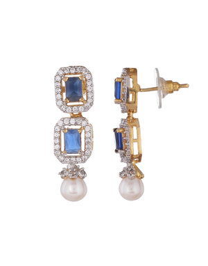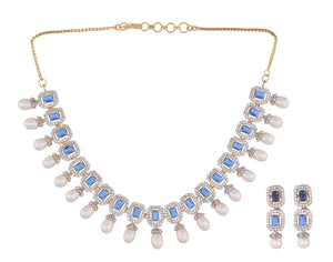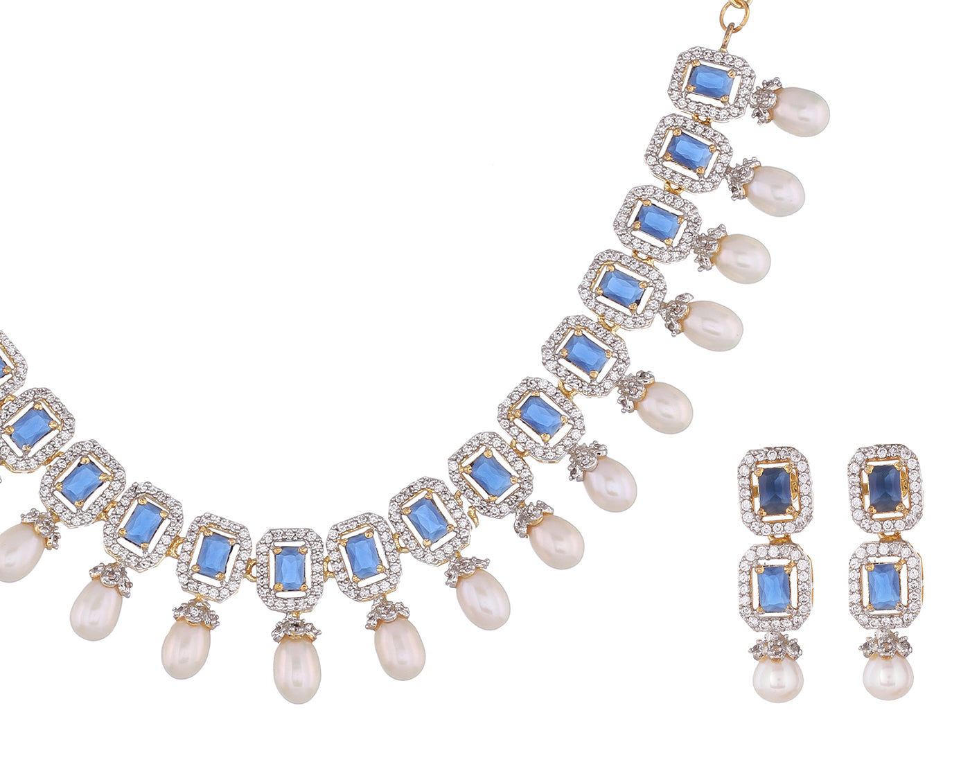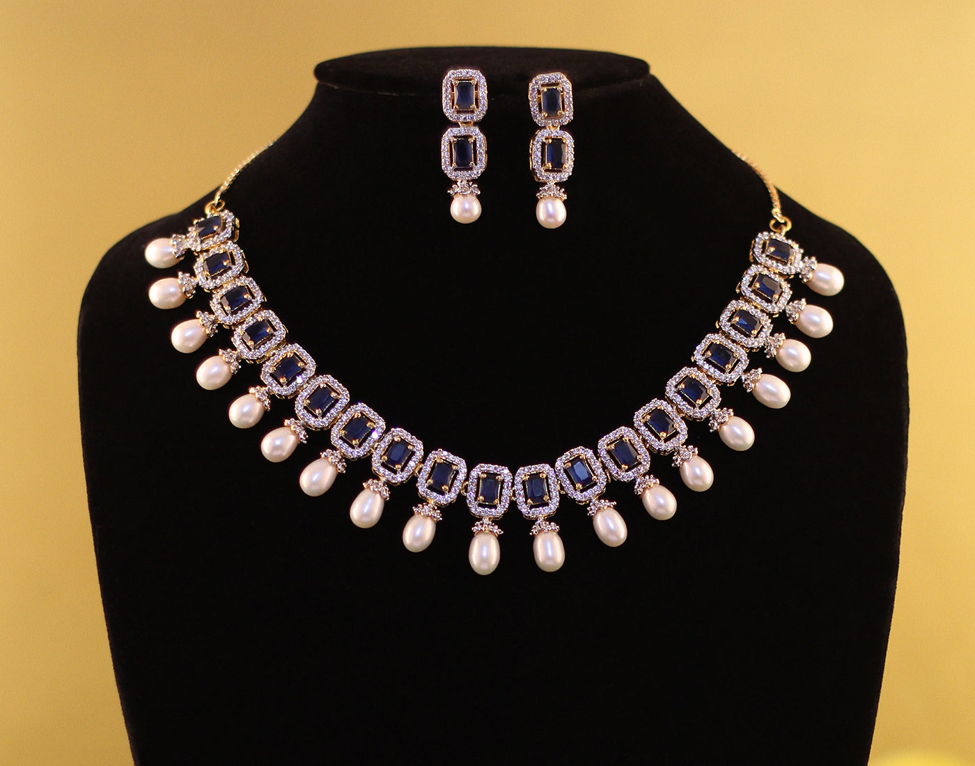 Cz Stone Studded Necklace Set With Real Pearl Drops With Certificate(D.No ADPRLS837)