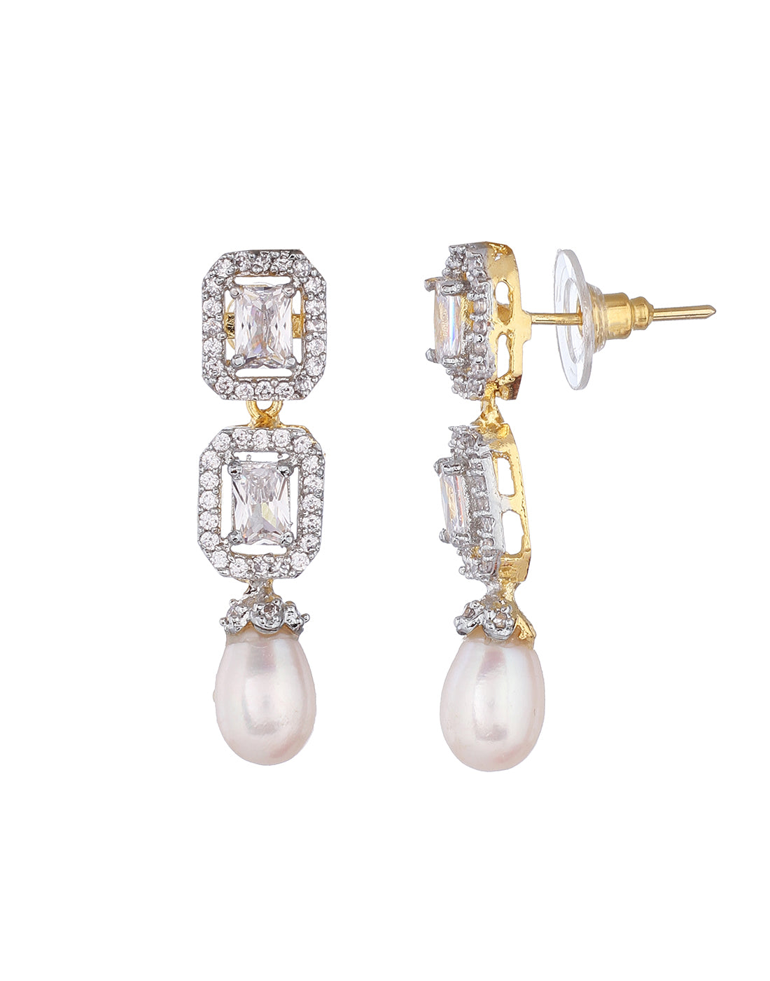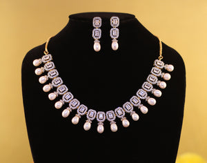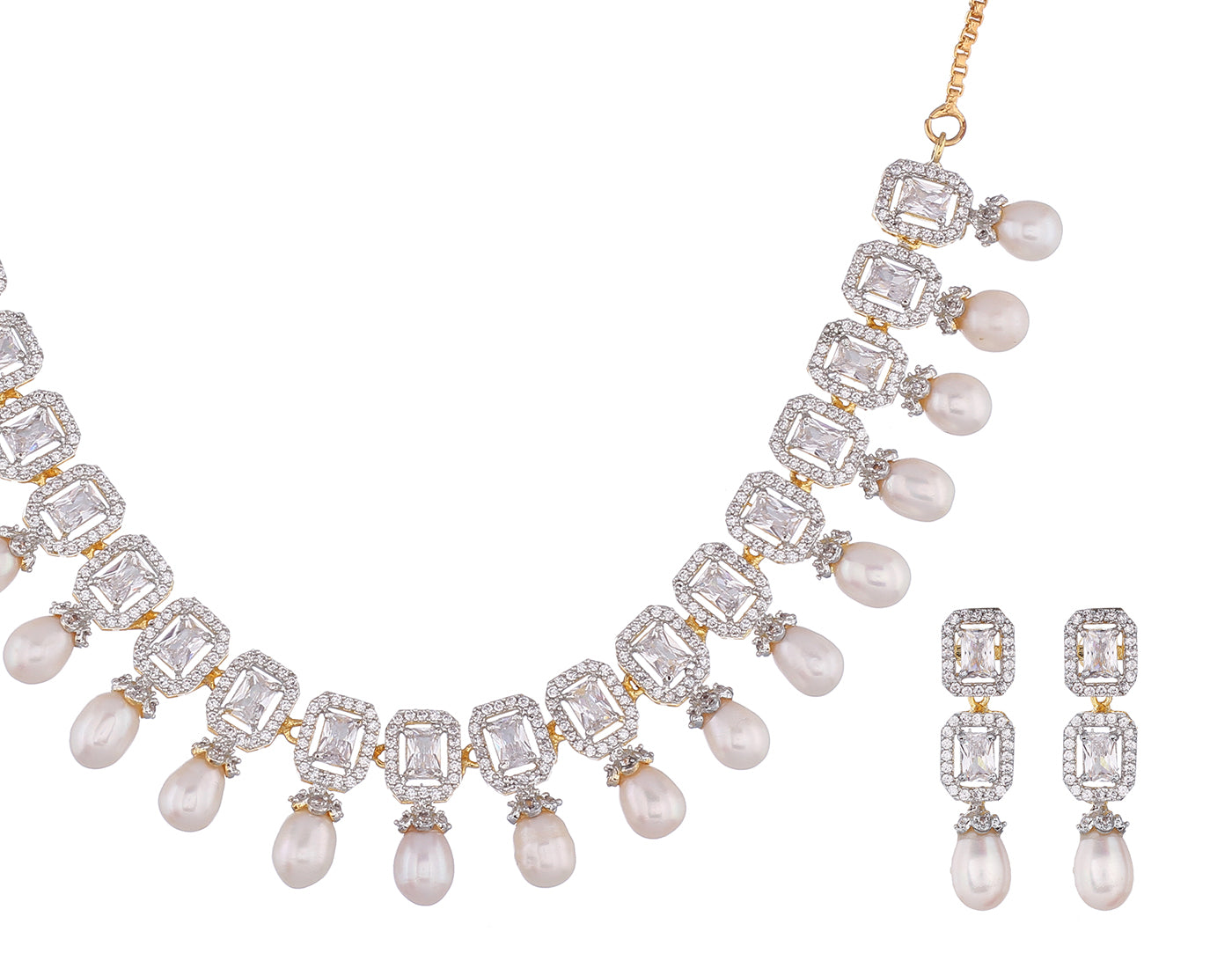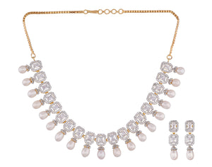 Cz Stone Studded Necklace Set With Real Pearl Drops With Certificate(D.No ADPRLS838)