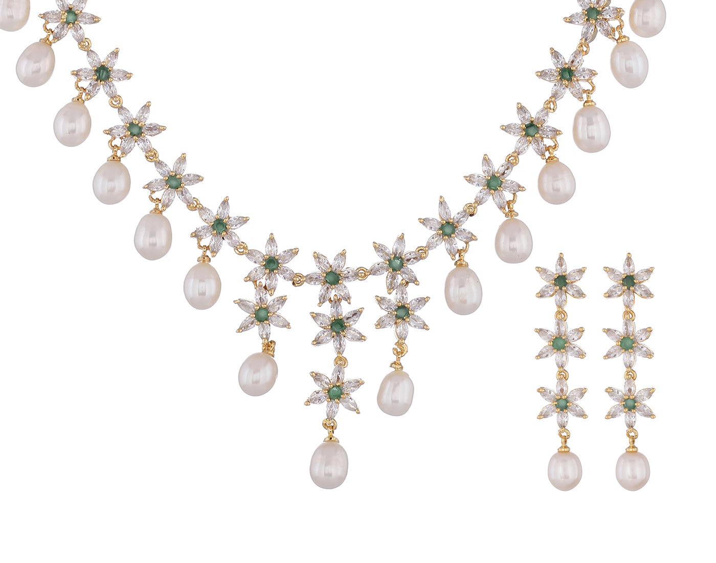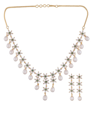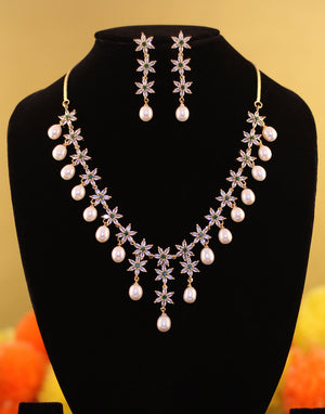 Cz Stone Studded Necklace Set With Real Pearl Drops With Certificate(D.No ADPRLS840)