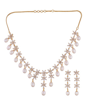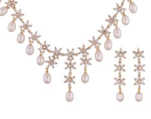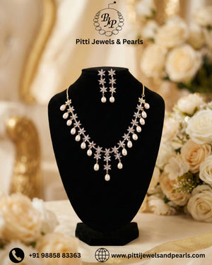 Cz Stone Studded Necklace Set With Real Pearl Drops With Certificate(D.No ADPRLS841)