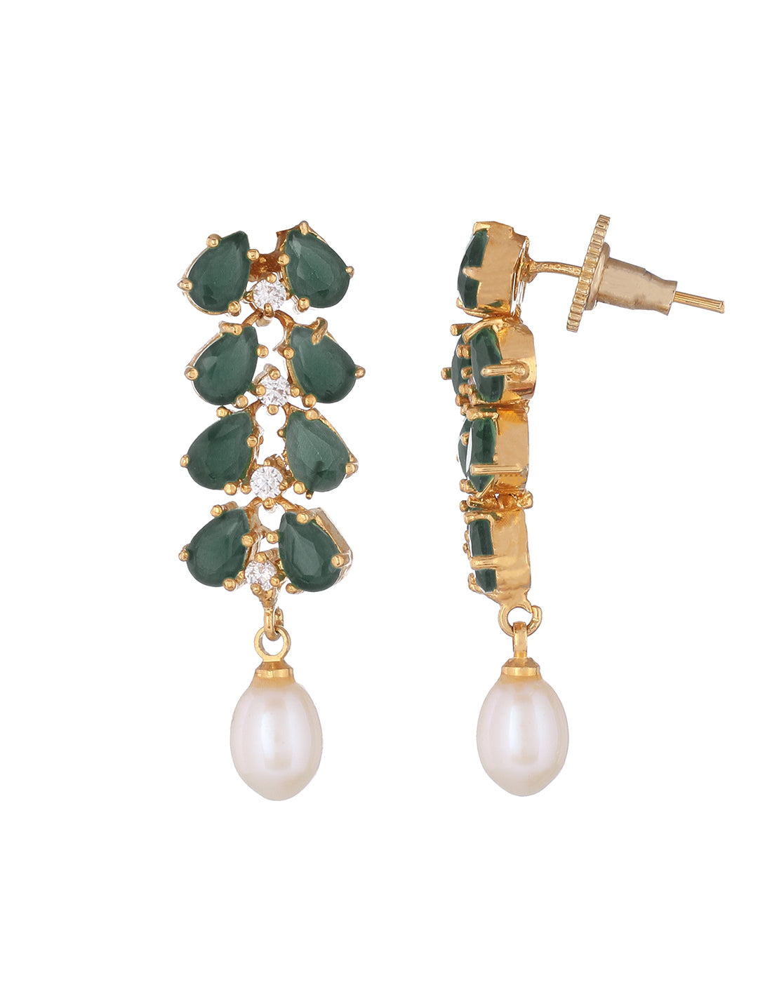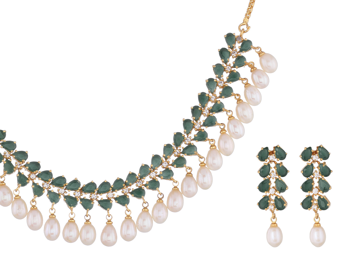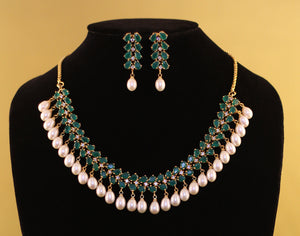 Cz Stone Studded Necklace Set With Real Pearl Drops With Certificate(D.No ADPRLS845)