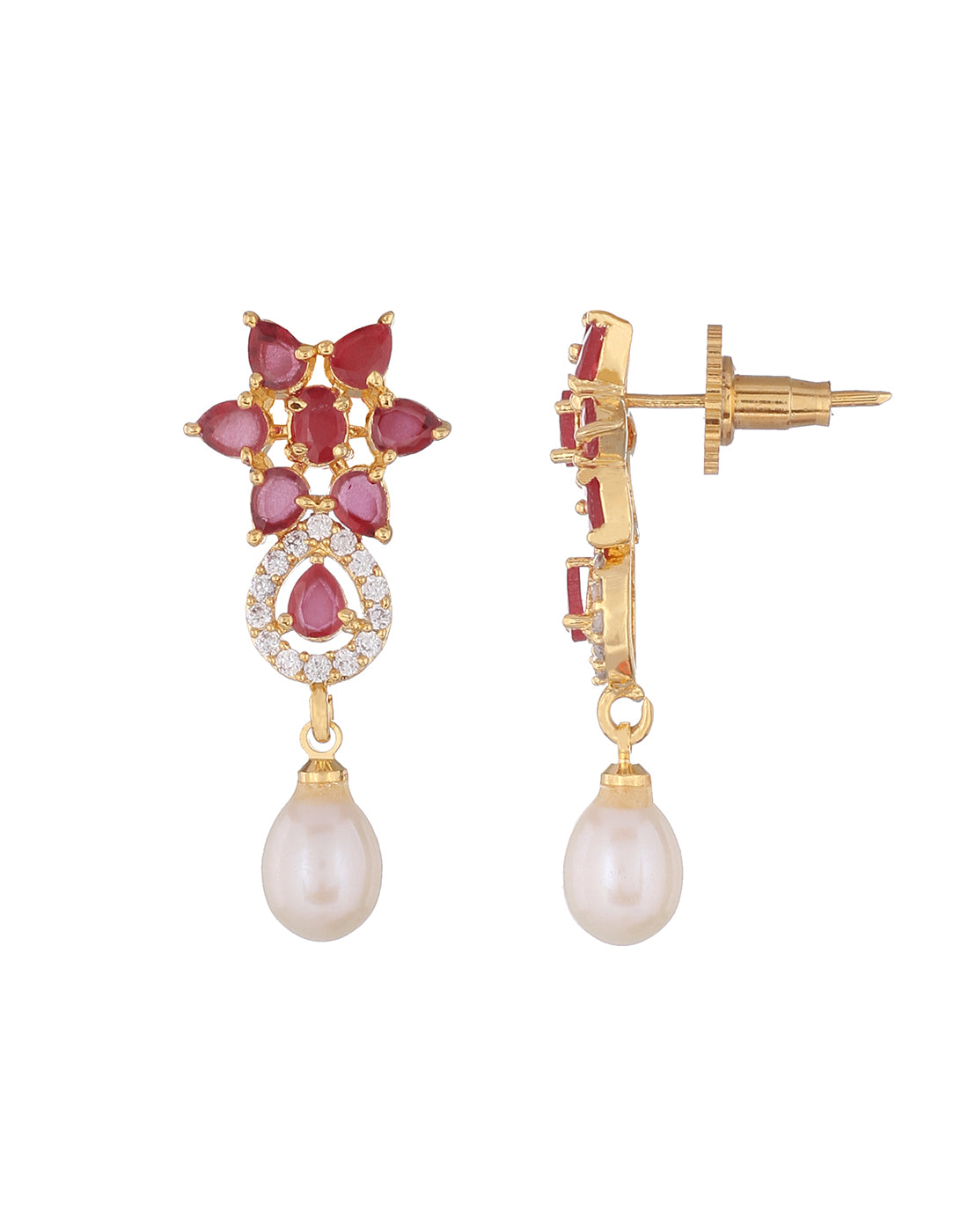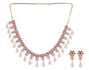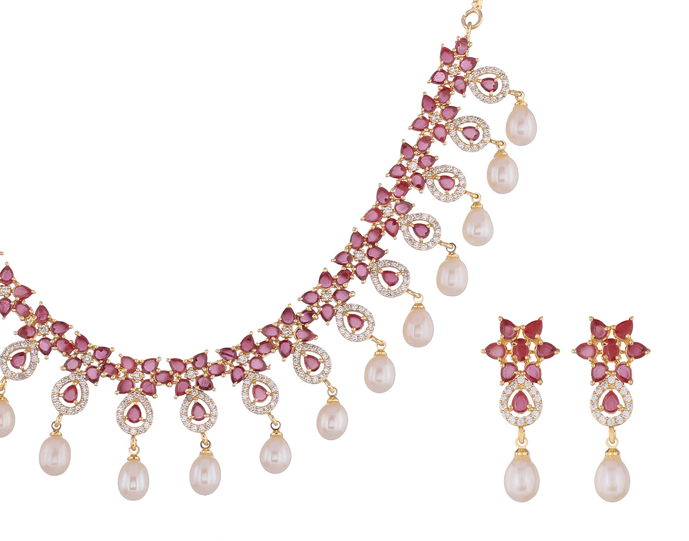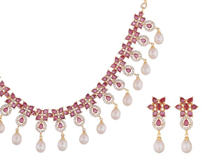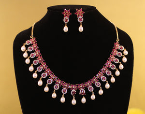 Cz Stone Studded Necklace Set With Real Pearl Drops With Certificate(D.No ADPRLS848)