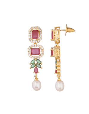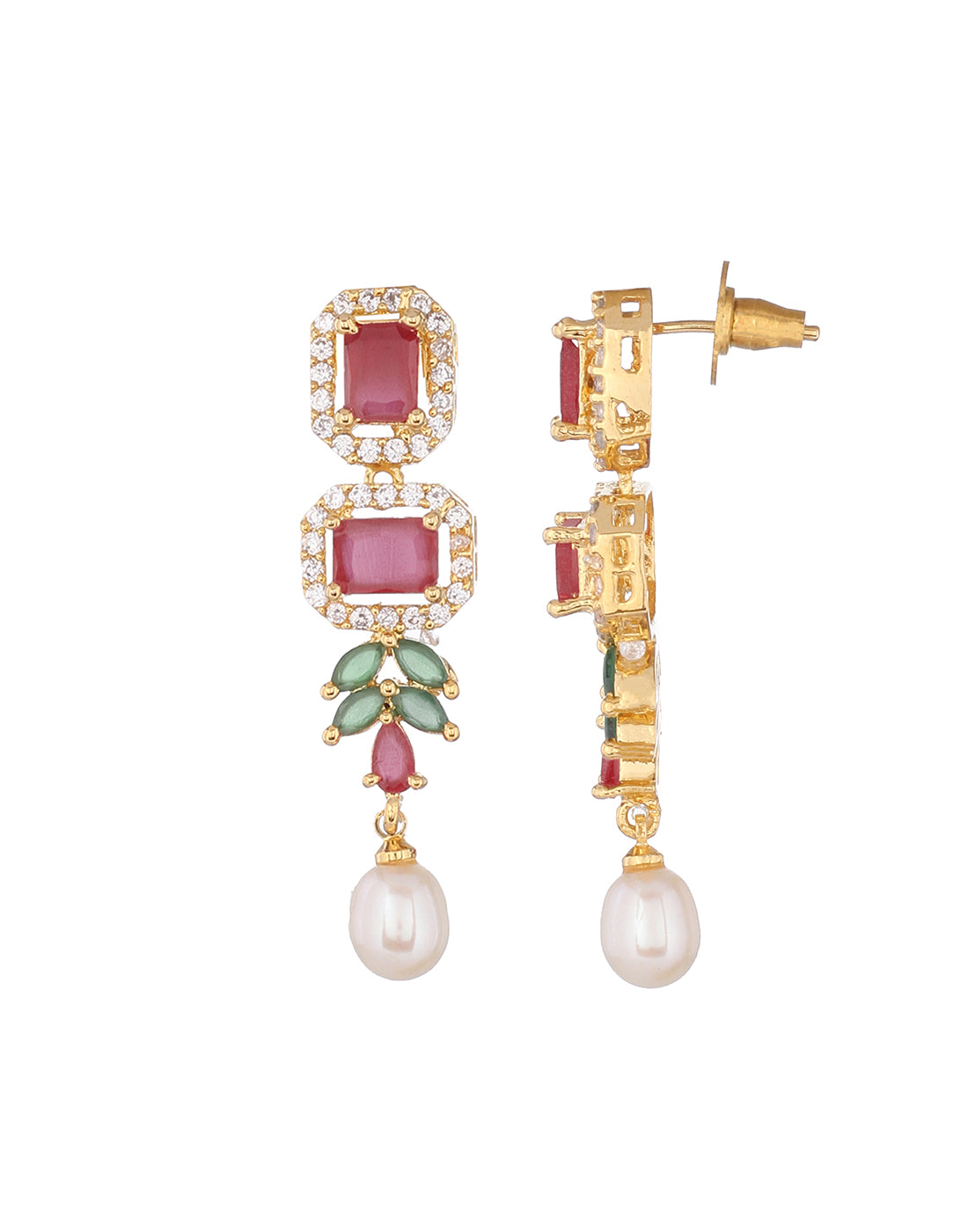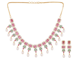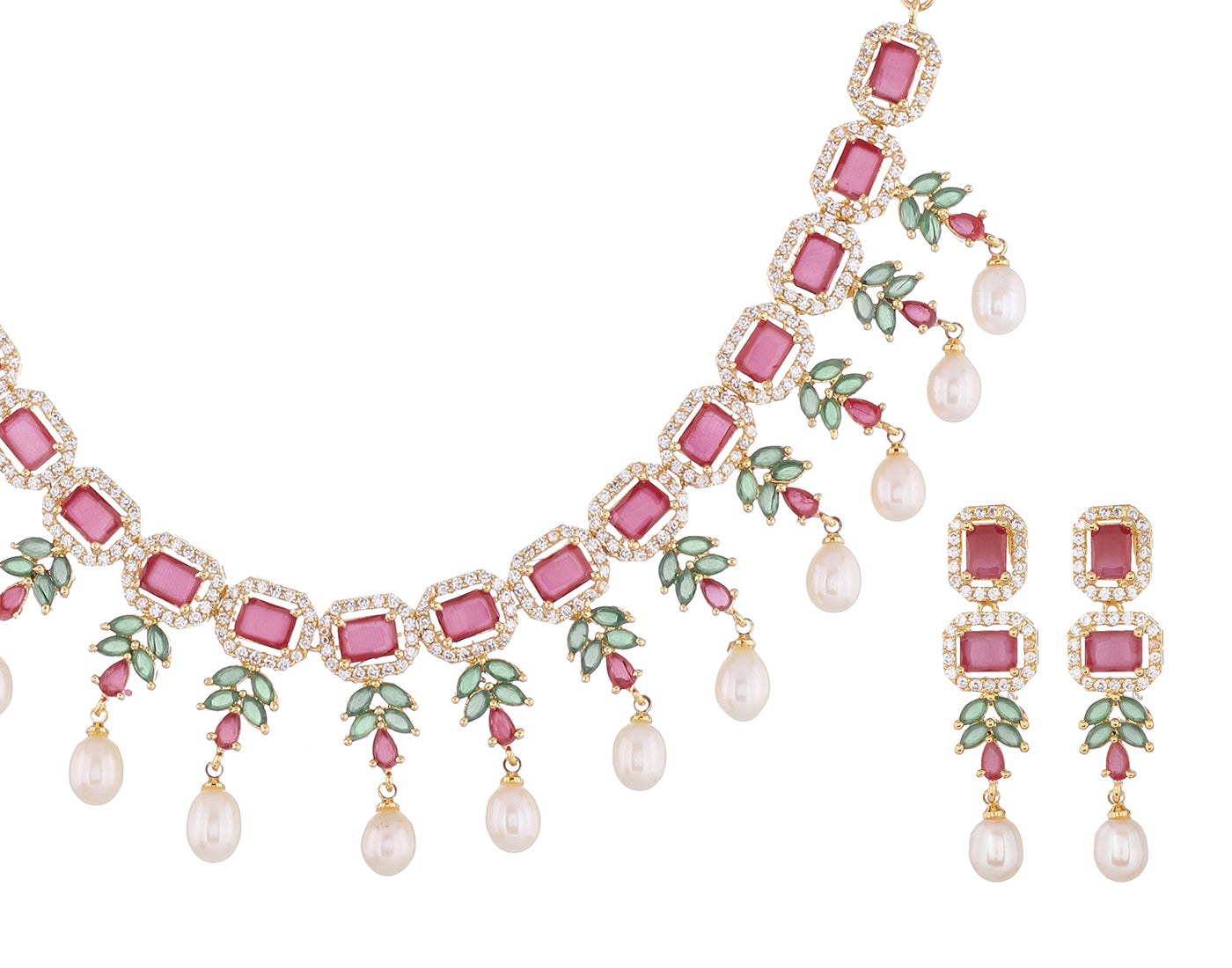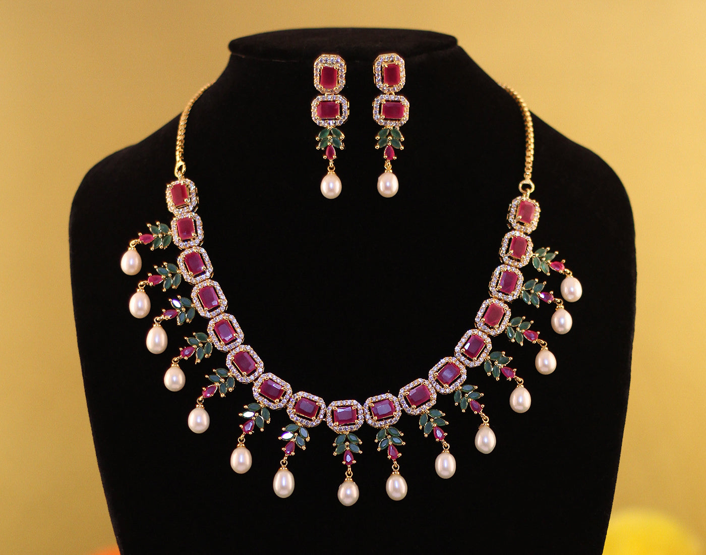 Cz Stone Studded Necklace Set With Real Pearl Drops With Certificate(D.No ADPRLS850)