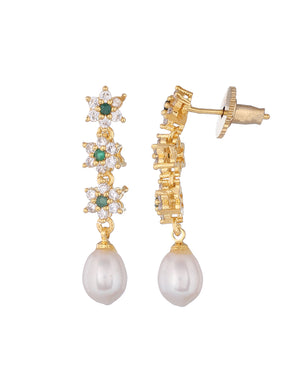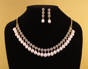 Cz Stone Studded Necklace Set With Real Pearl Drops With Certificate(D.No ADPRLS853)