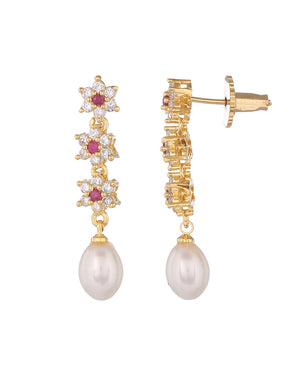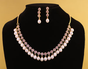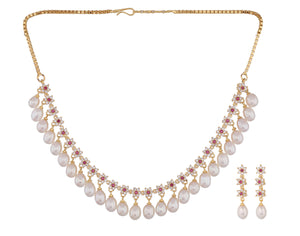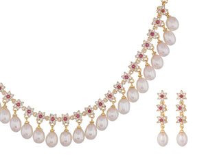 Cz Stone Studded Necklace Set With Real Pearl Drops With Certificate(D.No ADPRLS855)