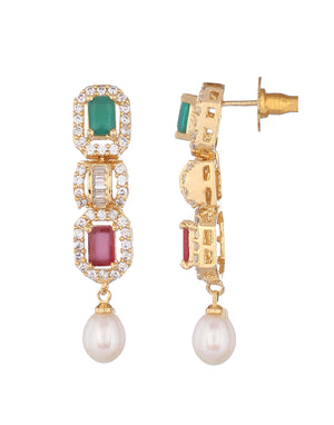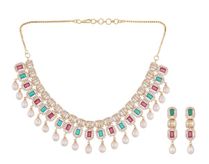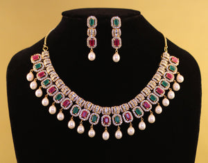 Cz Stone Studded Necklace Set With Real Pearl Drops With Certificate(D.No ADPRLS857)