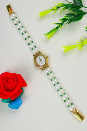 Crafted with high-quality craftsmanship, the set includes a stunning Bracelet Watch , all designed to enhance any outfit—whether it’s for a special occasion or everyday wear. The soft, iridescent hues of the pearls range from classic whites to subtle pinks, adding a touch of warmth and refinement.