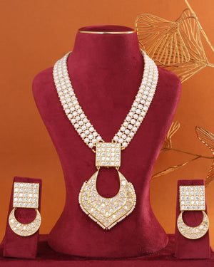 - Pendant Set Information - Made With Micro Size AD/Zirkon Stones Studded In It With Base Of Silver N Alloy Metal
