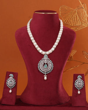 - Pendant Set Information - Made With Micro Size AD/Zirkon Stones Studded In It With Base Of Silver N Alloy Metal