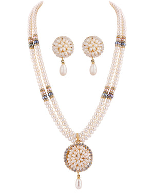 Natural Fresh Water Real Double String Pearl Set With Certificate(D.No ADPRLS135)
