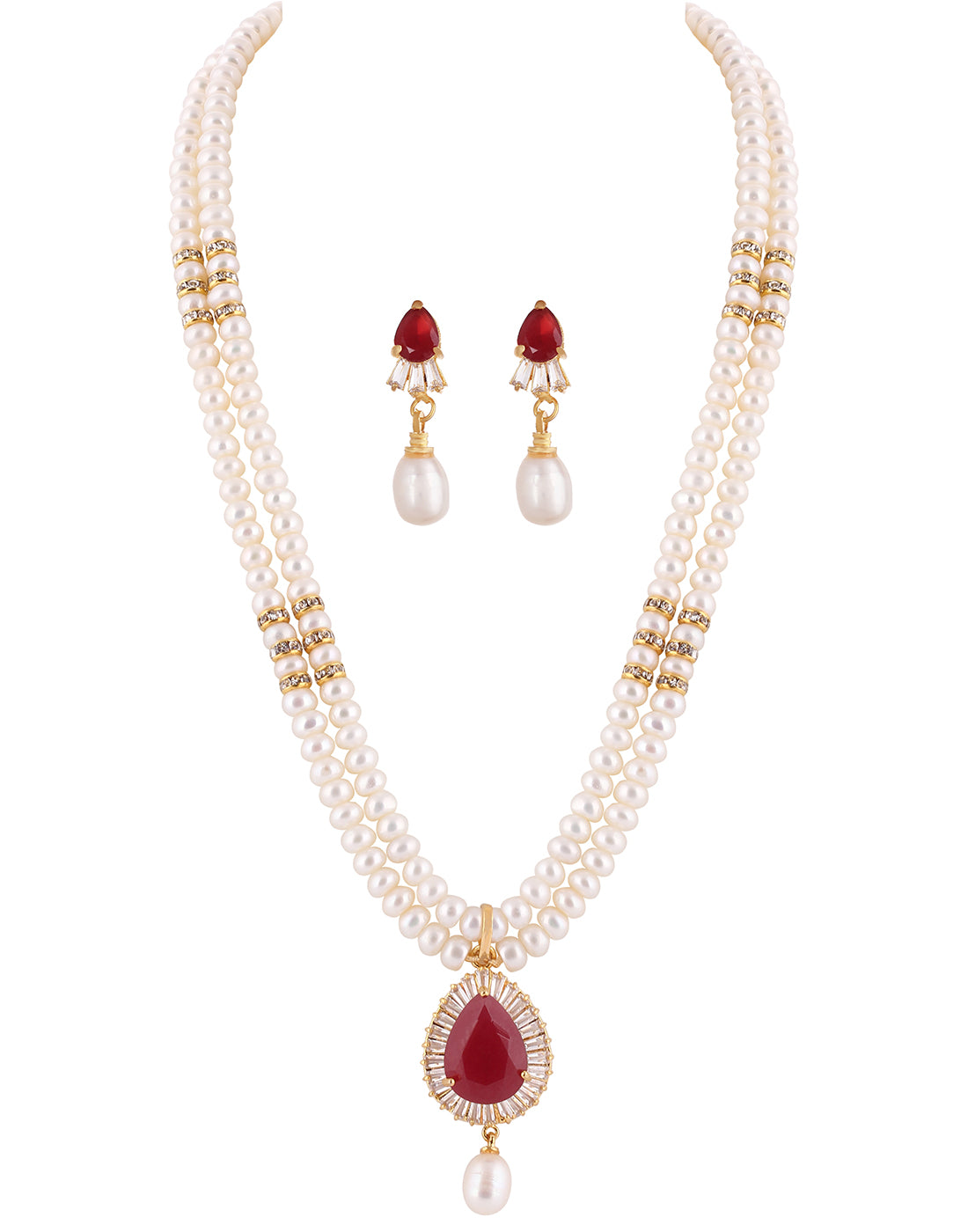 Natural Fresh Water Real Double String Pearl Set With Certificate(D.No ADPRLS120)
