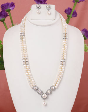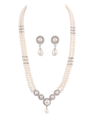 Natural Fresh Water Real Double String Pearl Set With Certificate(D.No ADPRLS223)