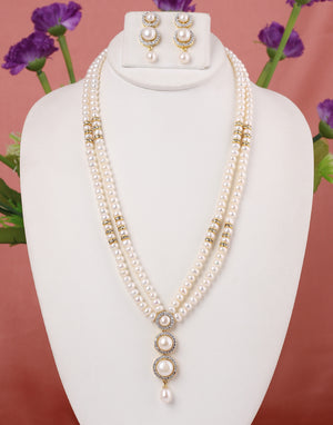 Natural Fresh Water Real Double String Pearl Set With Certificate(D.No ADPRLS225)