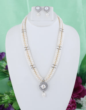 Natural Fresh Water Real Double String Pearl Set With Certificate(D.No ADPRLS294)