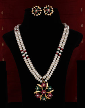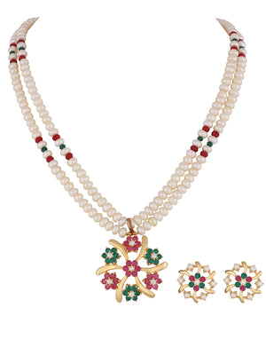 Natural Fresh Water Real Double String Pearl Set With Certificate(D.No ADPRLS432)