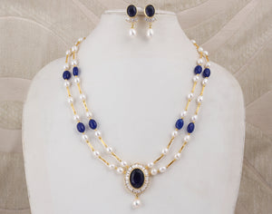 Natural Fresh Water Real Double String Pearl Set With Certificate(D.No ADPRLS871)