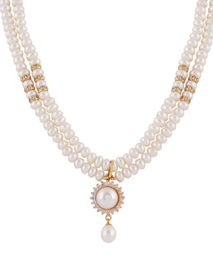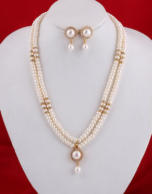 Natural Fresh Water Real Double String Pearl Set With Certificate(D.No ADPRLS977)