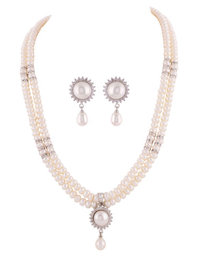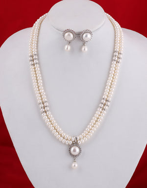 Natural Fresh Water Real Double String Pearl Set With Certificate(D.No ADPRLS979)