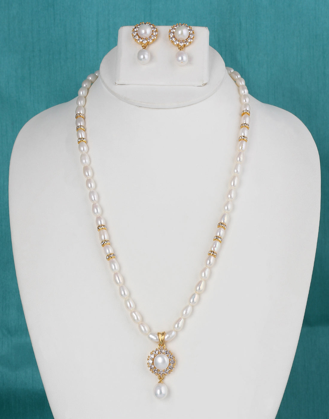 Natural Fresh Water Real Single String Pearl Set With Certificate(D.No ADPRLS123)