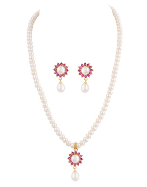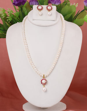 Natural Fresh Water Real Single String Pearl Set With Certificate(D.No ADPRLS217)