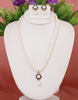 Natural Fresh Water Real Single String Pearl Set With Certificate(D.No ADPRLS219)
