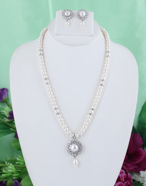 Natural Fresh Water Real Single String Pearl Set With Certificate(D.No ADPRLS293)