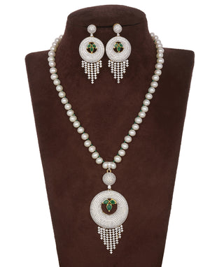 Natural Fresh Water Real Single String Pearl Set With Certificate(D.No ADPRLS300)