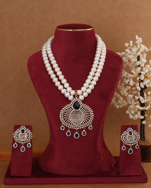- Pendant Set Information - Made With Micro Size AD/Zirkon Stones Studded In It With Base Of Silver N Alloy Metal
