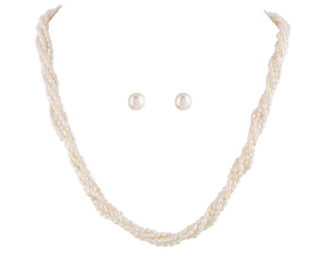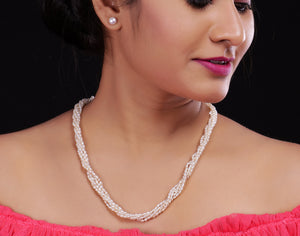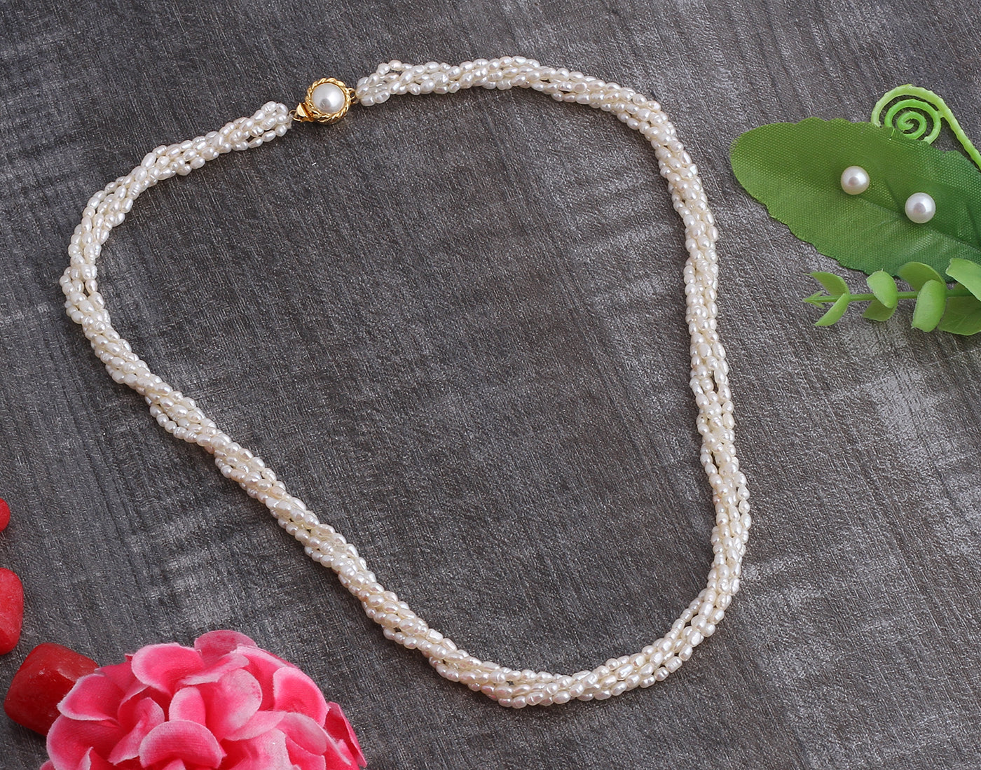 Real Natural Fresh Water 5 Lines Twisted Plain 2 MM Rice Pearl Mala Set With Certificate(D.No NPS219)