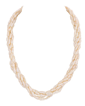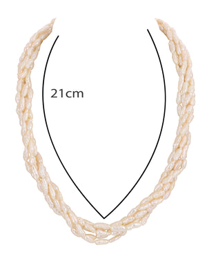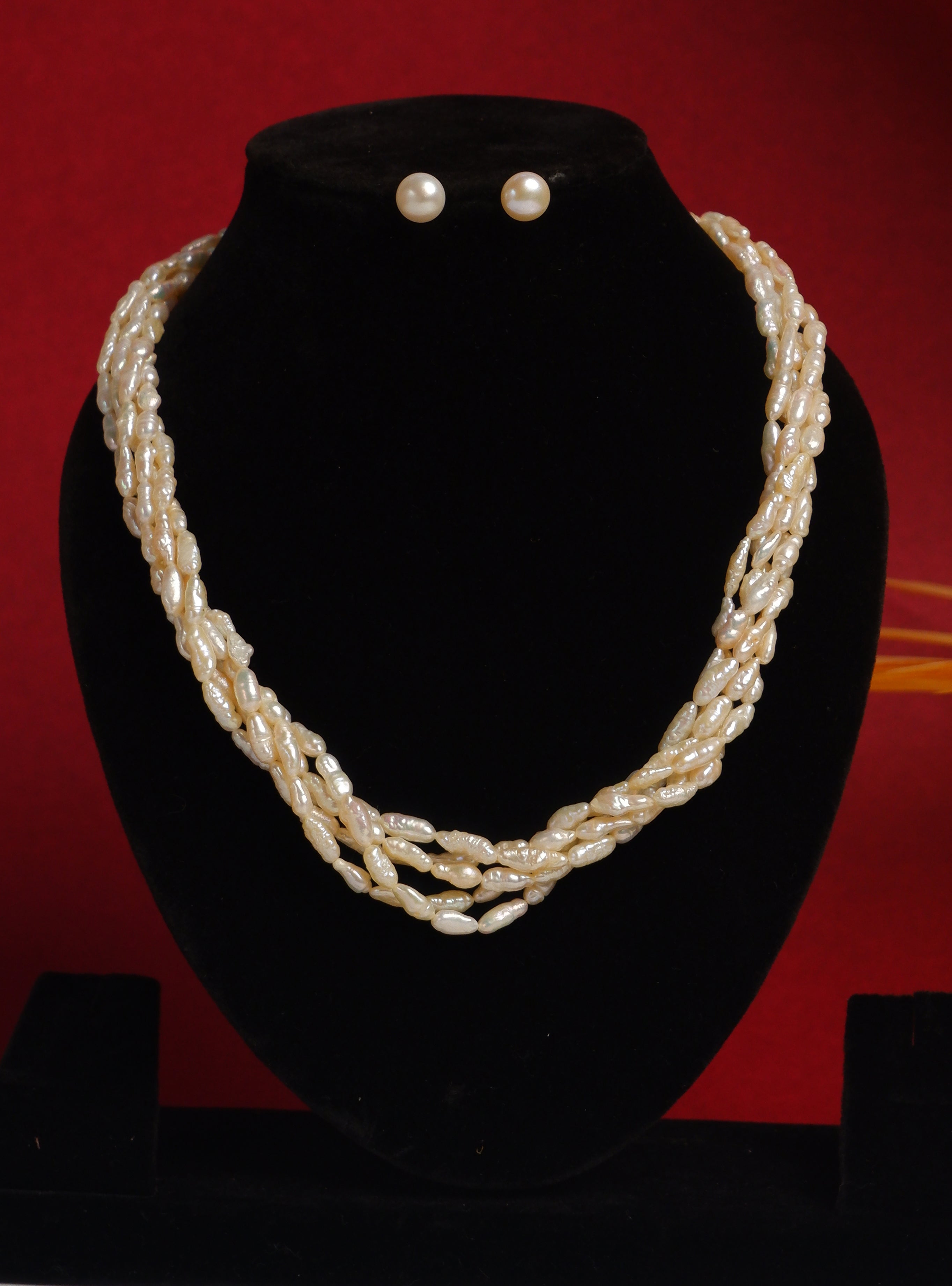 Real Natural Fresh Water 5 Lines Twisted Plain Pearl Mala Set With Certificate(D.No NPS307)