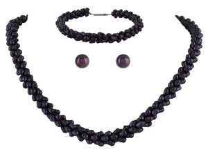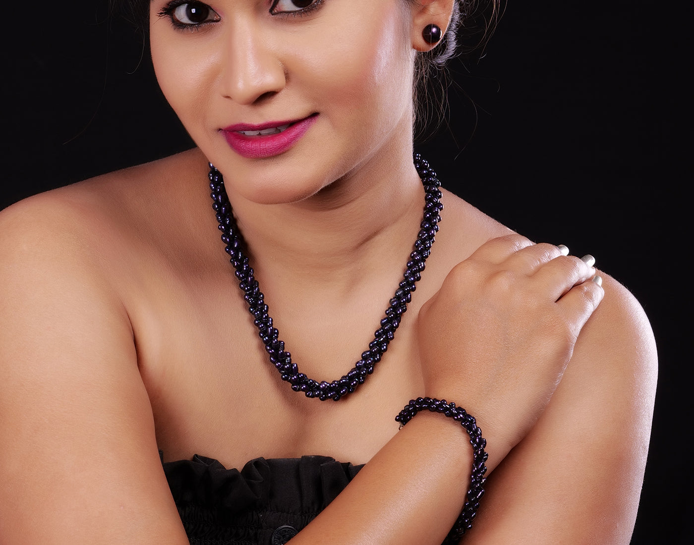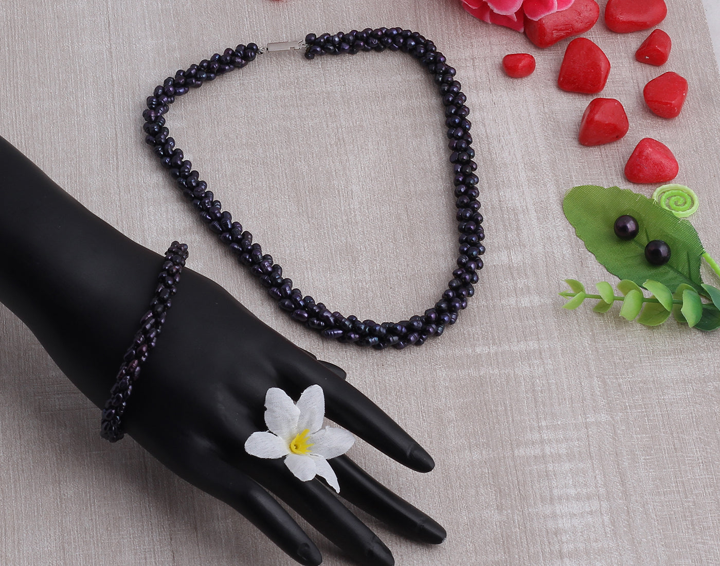 Real Natural Fresh Water Black Pearls Mala n Bracelet With Certificate(D.No COMBO101)