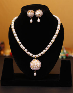 Real Natural Fresh Water Button Pearl Set With Certificate(D.No ADPRLS815)