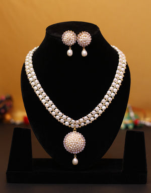 Crafted with high-quality craftsmanship, the set includes a stunning necklace, matching earrings, all designed to enhance any outfit—whether it’s for a special occasion or everyday wear. The soft, iridescent hues of the pearls range from classic whites to subtle pinks, adding a touch of warmth and refinement.