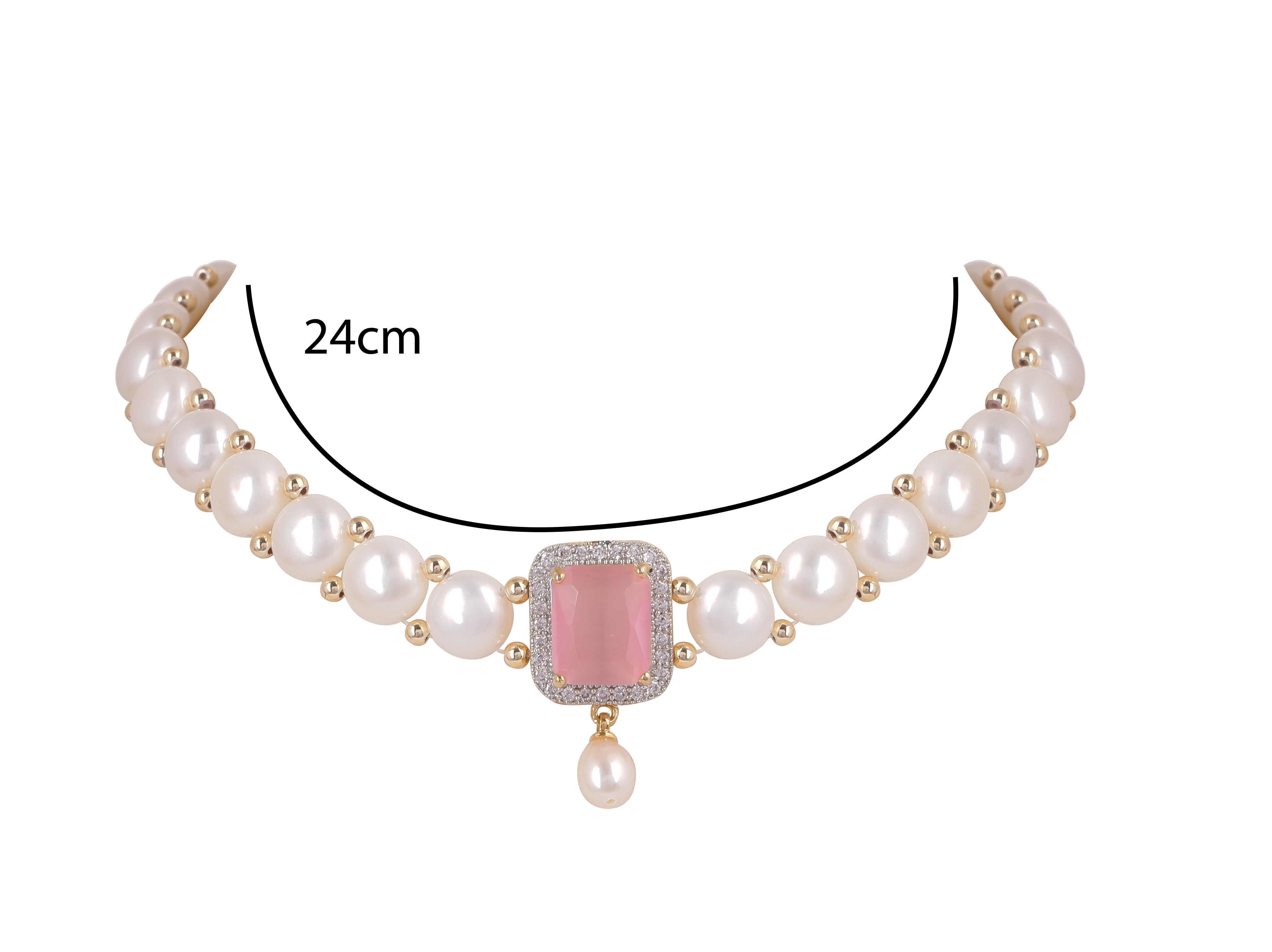 Our exquisite Natural Freshwater Choker Pearls Set, a timeless collection that embodies elegance and sophistication. Each pearl in this set is uniquely shaped, showcasing the organic beauty and luster that only nature can create.