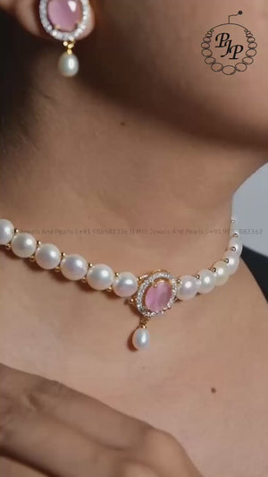 Real Natural Fresh Water Button Pearls Choker Set For Women With Certificate(D.No CKR126)