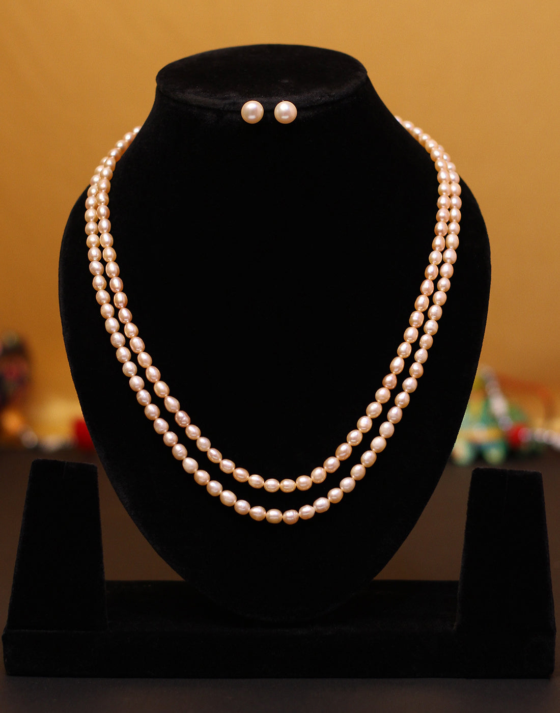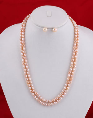 Real Natural Fresh Water Double Line Pearls Mala Set 5 MM With Cert.No NPS129)