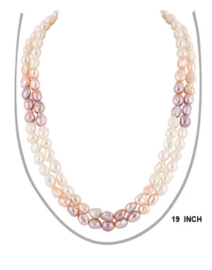 Real Natural Fresh Water Double Line Plain Barook Pearl Mala Set With Certificate(D.No NPS258)