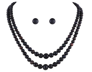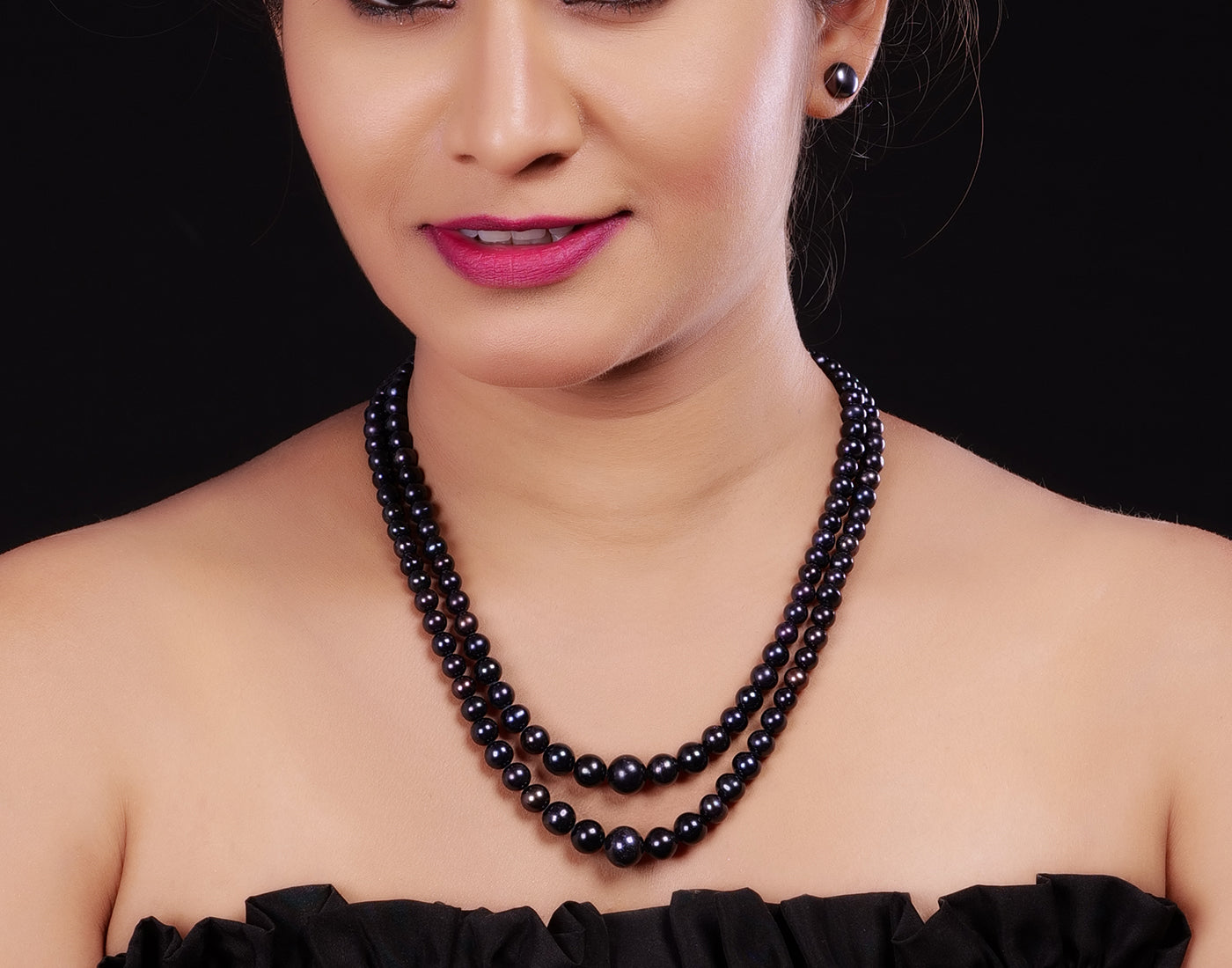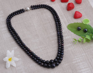 Real Natural Fresh Water Double Line Plain Black Pearl 4 To 9 MM Graduation Mala Set With Certificate(D.No NPS216)