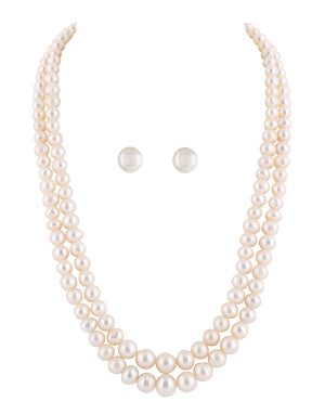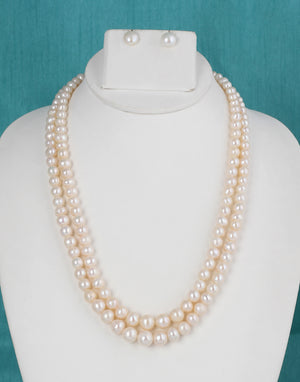 Real Natural Fresh Water Double Line Plain Pearl 4 To 9 MM Graduation Mala Set With Certificate(D.No NPS247)