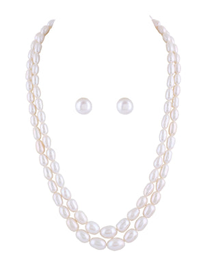 Real Natural Fresh Water Double Line Plain Pearl 5 To 12 MM Graduation Mala Set With Certificate(D.No NPS263)